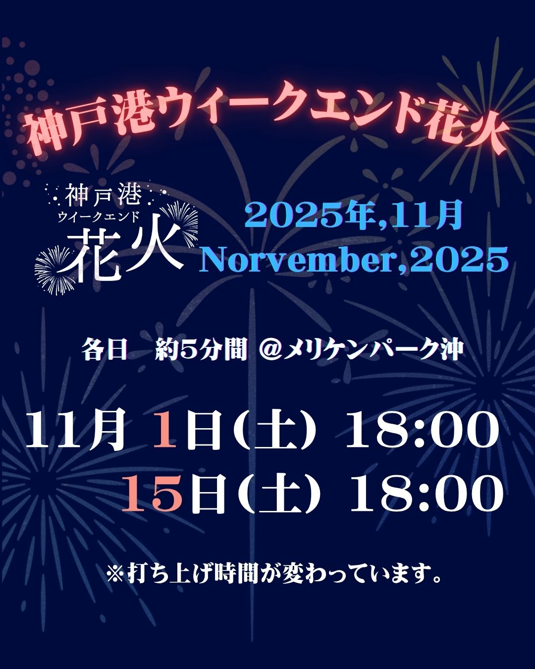 11月 神戸港ウィークエンド花火