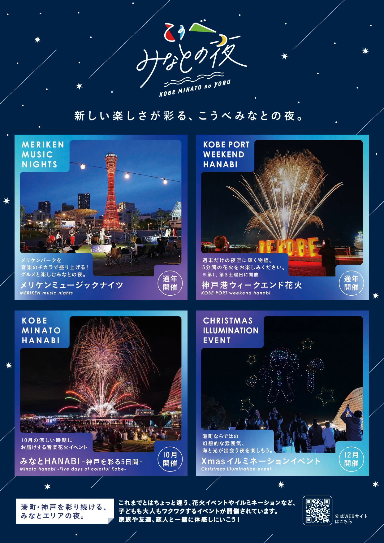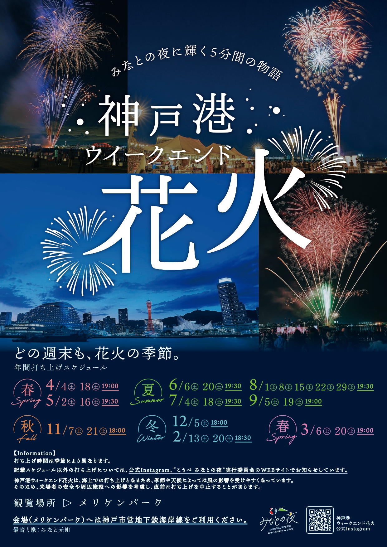 神戸港ウィークエンド花火の2026年度の年間打ち上げスケジュールのお知らせです。